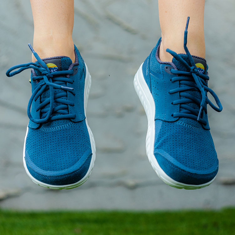 Places the forefoot and heel flat to the ground correcting posture, aligning your spine, and encouraging mid-foot strike.