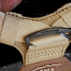 A specially engineered webbing guide that uses a single piece of material to slide and adjust the tightness around your heel and instep for the perfect fit.