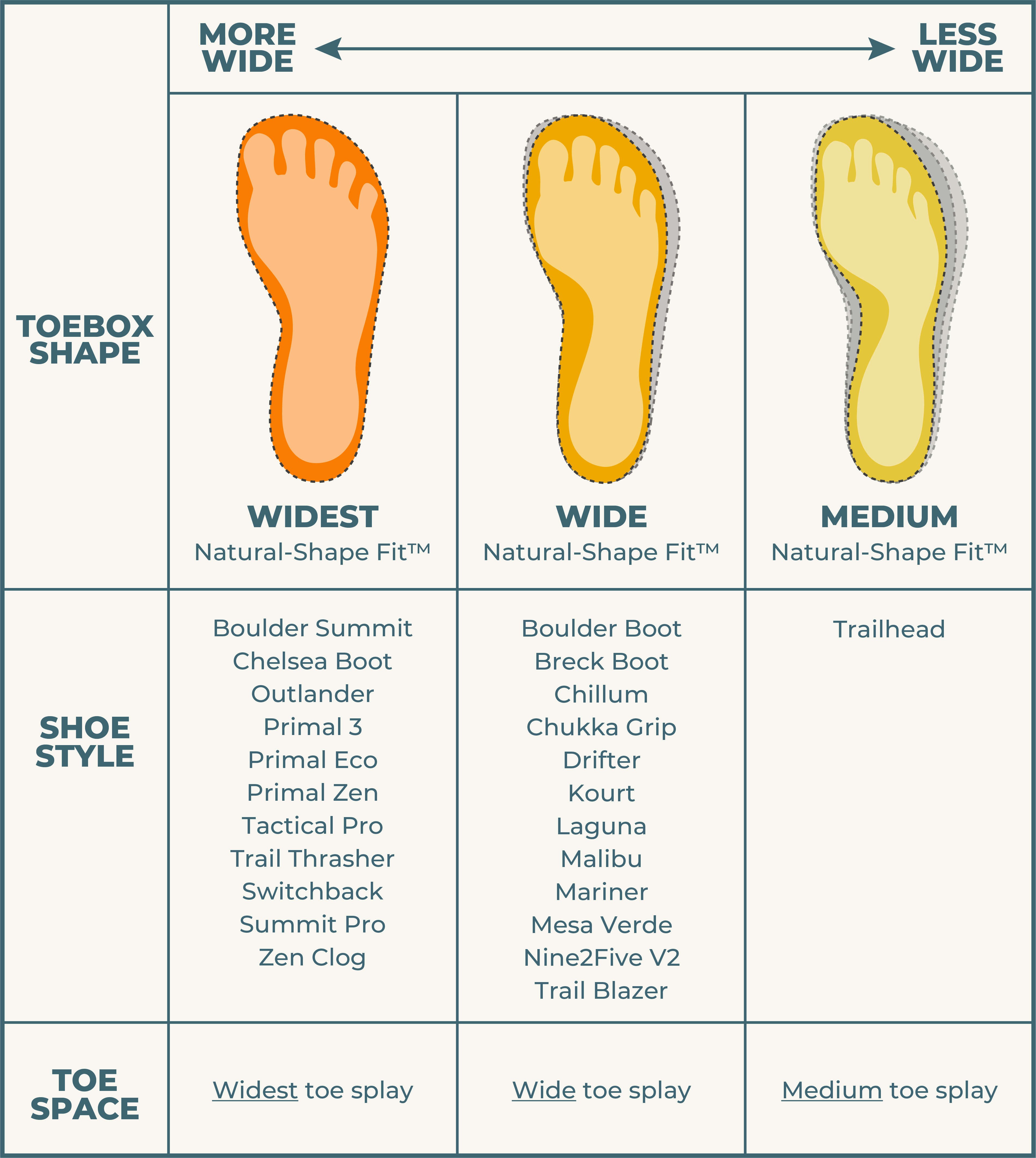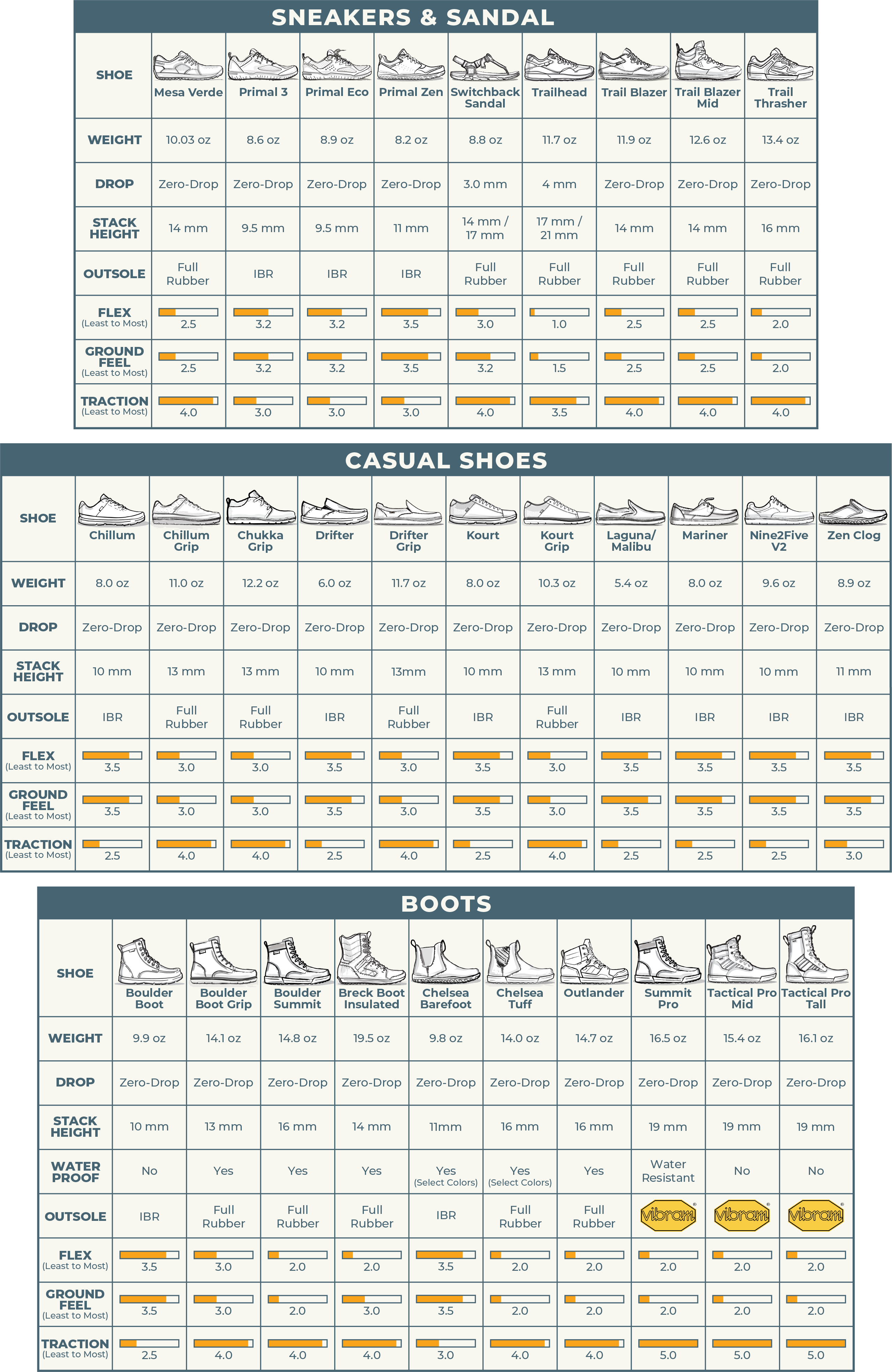 SHOE SPEC COMPARISON GUIDE