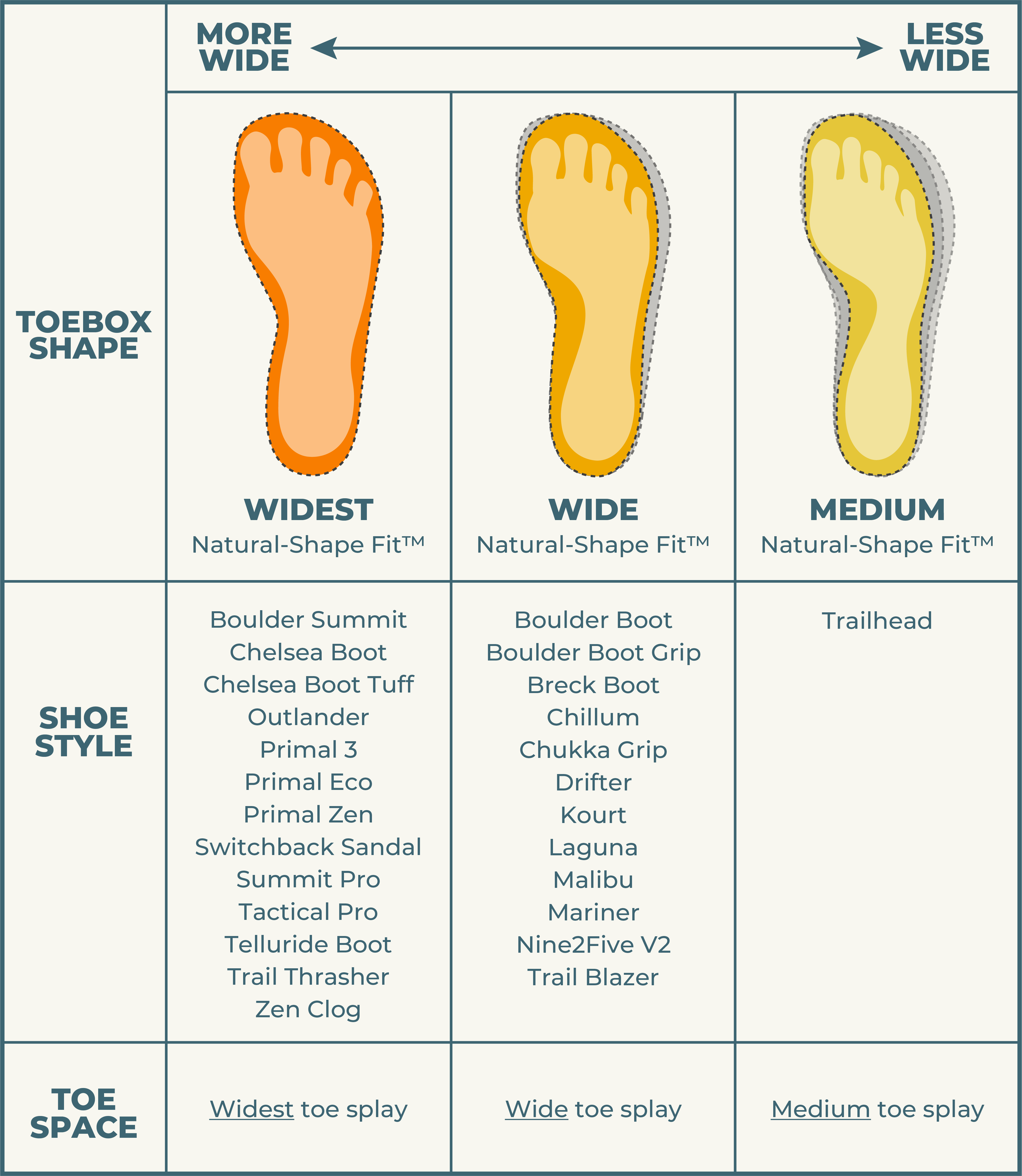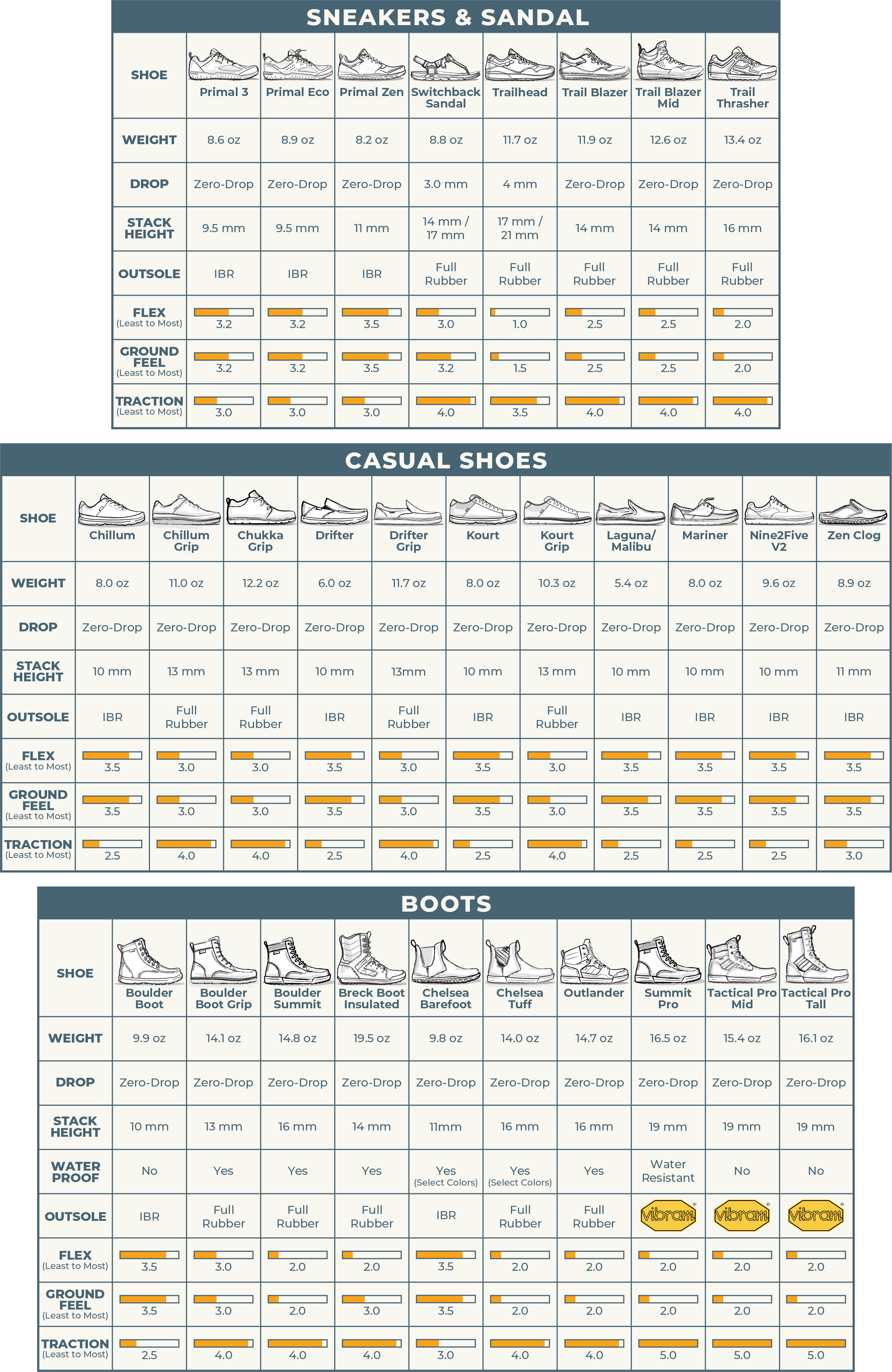 SHOE SPEC COMPARISON GUIDE