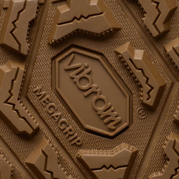 The Vibram® Megagrip outsole is a high performance rubber compound, specifically engineered for wet and dry terrain, offering a combination of traction and durability for trekking, hiking and other outdoor activities.